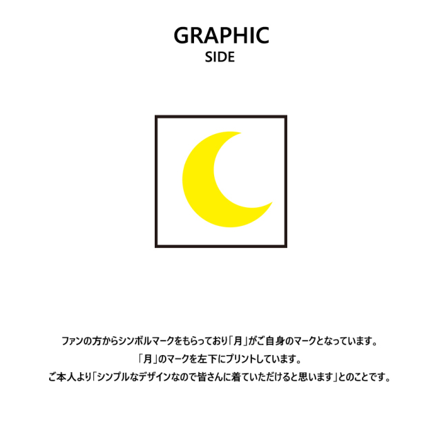 さんを迎えたPIKO KAILA コラボレーション企画! 今回は半袖Tシャツ、長袖Tシャツ、トートバッグをリリース! 【デザイン】 ファンの方からシンボルマークをもらっており「月」がご自身のマークとなっています。 「月」のマークを左下にプリントしています。 ご本人より「シンプルなデザインなので皆さんに着ていただけると思います」とのことです。 ※商品の発送予定時期は 【8月中旬頃~8月下旬頃順次発送予定】となります。 ※受注生産の為、発送予定時期が前後する場合がございます。 ※高額注文の場合には ご注文後にお電話にてご連絡をさせていただく場合がございます。 お電話にてご連絡が取れない場合にはメールにてご連絡させていただき、 ご連絡日より3日以内にご返信をいただけない場合には不正注文の可能性があると判断し トラブル防止のためご注文をキャンセルとさせていただきます。 ※商品によっては撮影時にサンプルを使用しているため若干仕様が異なる場合がございます。 また、サイズ・カラーによっては仕様が異なる場合もございます。 ※手作業で縫製をしているため縫製の仕様により、 個体差が生じてしまいますので、1~2cm程度の誤差は予めご了承くださいませ。 ※洗濯機を使用した場合、お届け時のサイズより多少縮む場合がございます。 洗濯機を使用する場合は裏返してネットに入れることを推奨しております。 また、タンブラー乾燥機を使用しますとプリントが剥がれる恐れがありますので 避けていただきますようお願いいたします。 また、洗濯時の液温は40度以下とし、 塩素系および酸素系漂白剤の使用は避けていただきますようお願いいたします。 アイロンにつきましてもプリント及び刺繍部分は避け、 生地部分にアイロンをかける場合にはあて布をして110度(低温)にてお願いいたします。 ※また、受注生産とさせていただいておりますが、 各色・サイズ毎に生産数に限りがございます為、 生産数の上限に達しました場合在庫切れとなる場合がございます。 |