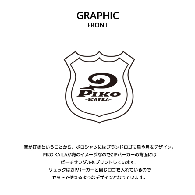 | 商品Data | 里菜さんを迎えたPIKO KAILA コラボレーション企画! 今回はポロシャツ、ZIPパーカー、イヤーカフ、リュックをリリース! 【デザイン】 空が好きということから、ポロシャツにはブランドロゴに星や月をデザイン。 PIKO KAILAが海のイメージなのでZIPパーカーの背面にはビーチサンダルをプリントしています。 リュックはZIPパーカーと同じロゴを入れているのでセットで使えるようなデザインとなっています。 【ポイント】 ・キャリングハンドルが付いた2Way仕様 ・ノートPCの入る内側ポケットを装備(※全ての機種が収納可能ではありません) ・光沢のあるポリエステル素材を採用 ※現時点での商品の発送予定時期は【2月中旬頃~3月上旬頃順次発送】を予定しております。 尚、工場の生産の都合上、お客様のご入金・決済のタイミングにより前後する場合がございます。 予めご了承ください。 ※商品によっては撮影時にサンプルを使用しているため若干仕様が異なる場合がございます。 また、サイズ・カラーによっては仕様が異なる場合もございます。 ※手作業で縫製をしているため縫製の仕様により、 個体差が生じてしまいますので、1~2cm程度の誤差は予めご了承くださいませ。 ※洗濯機を使用した場合、お届け時のサイズより多少縮む場合がございます。 洗濯機を使用する場合は裏返してネットに入れることを推奨しております。 また、タンブラー乾燥機を使用しますとプリントが剥がれる恐れがありますので 避けていただきますようお願いいたします。 また、洗濯時の液温は40度以下とし、 塩素系および酸素系漂白剤の使用は避けていただきますようお願いいたします。 アイロンにつきましてもプリント及び刺繍部分は避け、 生地部分にアイロンをかける場合にはあて布をして110度(低温)にてお願いいたします。 ※また、受注生産とさせていただいておりますが、 各色・サイズ毎に生産数に限りがございます為、 生産数の上限に達しました場合在庫切れとなる場合がございます。 予めご了承頂けますようお願い致します。 |