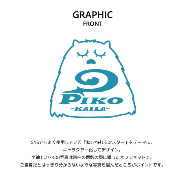| 商品Data | 一ノ瀬瑠菜さんを迎えたPIKO KAILAコラボレーション企画! 今回は半袖Tシャツ、プルオーバーパーカー、キャップをご用意! 【デザイン】 SNSでもよく使用している「ねむねむモンスター」をテーマに、キャラクター化してデザイン。 半袖Tシャツの写真は別件の撮影の際に撮ったオフショットで、ご自身だとはっきり分からないような 写真を選んだところがポイントです。 ※現時点での商品の発送予定時期は【2月中旬頃〜2月下旬頃順次発送予定】となります。 尚、工場の生産の都合上、お客様のご入金・決済のタイミングにより前後する場合がございます。 予めご了承ください。 ※商品代金が10万円以上にて代引き決済を利用してのご注文につきましては、 トラブル防止のため、決済方法をクレジットカード決済もしくはコンビニ決済に変更 させていただく場合がございます。変更前にお電話、メールにてご連絡をさせていただきます。※ ※商品によっては撮影時にサンプルを使用しているため若干仕様が異なる場合がございます。 また、サイズ・カラーによっては仕様が異なる場合もございます。 ※手作業で縫製をしているため縫製の仕様により、 個体差が生じてしまいますので、1~2cm程度の誤差は予めご了承くださいませ。 ※洗濯機を使用した場合、お届け時のサイズより多少縮む場合がございます。 また、乾燥機の使用は避けていただきますようお願いいたします。 ※また、受注生産とさせていただいておりますが、 各色・サイズ毎に生産数に限りがございます為、 生産数の上限に達しました場合在庫切れとなる場合がございます。 |