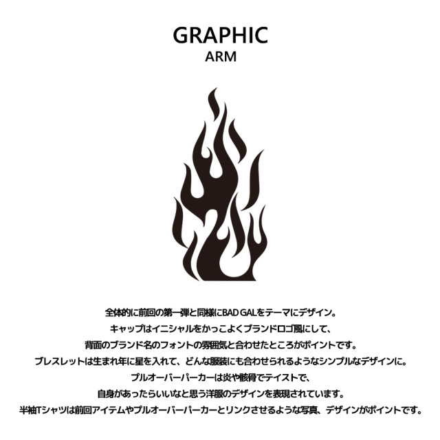 | 商品Data | 安杜羽加さんを迎えたPIKO KAILA コラボレーション企画第2弾! 今回は半袖Tシャツ、プルオーバーパーカー、キャップ、ブレスレットをリリース! 【デザイン】 全体的に前回の第一弾と同様にBAD GALをテーマにデザイン。 キャップはイニシャルをかっこよくブランドロゴ風にして、 背面のブランド名のフォントの雰囲気と合わせたところがポイントです。 ブレスレットは生まれ年に星を入れて、どんな服装にも合わせられるようなシンプルなデザインに。 プルオーバーパーカーは炎や骸骨でテイストで、 自身があったらいいなと思う洋服のデザインを表現されています。 半袖Tシャツは前回アイテムやプルオーバーパーカーとリンクさせるような写真、 デザインがポイントです。 ※現時点での商品の発送予定時期は【5月中旬頃~5月下旬頃順次発送予定】となります。 尚、工場の生産の都合上、お客様のご入金・決済のタイミングにより前後する場合がございます。 予めご了承ください。 ※商品によっては撮影時にサンプルを使用しているため若干仕様が異なる場合がございます。 また、サイズ・カラーによっては仕様が異なる場合もございます。 ※手作業で縫製をしているため縫製の仕様により、 個体差が生じてしまいますので、1~2cm程度の誤差は予めご了承くださいませ。 ※洗濯機を使用した場合、お届け時のサイズより多少縮む場合がございます。 洗濯機を使用する場合は裏返してネットに入れることを推奨しております。 また、タンブラー乾燥機を使用しますとプリントが剥がれる恐れがありますので 避けていただきますようお願いいたします。 また、洗濯時の液温は40度以下とし、 塩素系および酸素系漂白剤の使用は避けていただきますようお願いいたします。 アイロンにつきましてもプリント及び刺繍部分は避け、 生地部分にアイロンをかける場合にはあて布をして110度(低温)にてお願いいたします。 ※また、受注生産とさせていただいておりますが、 各色・サイズ毎に生産数に限りがございます為、 生産数の上限に達しました場合在庫切れとなる場合がございます。 予めご了承頂けますようお願い致します。 |