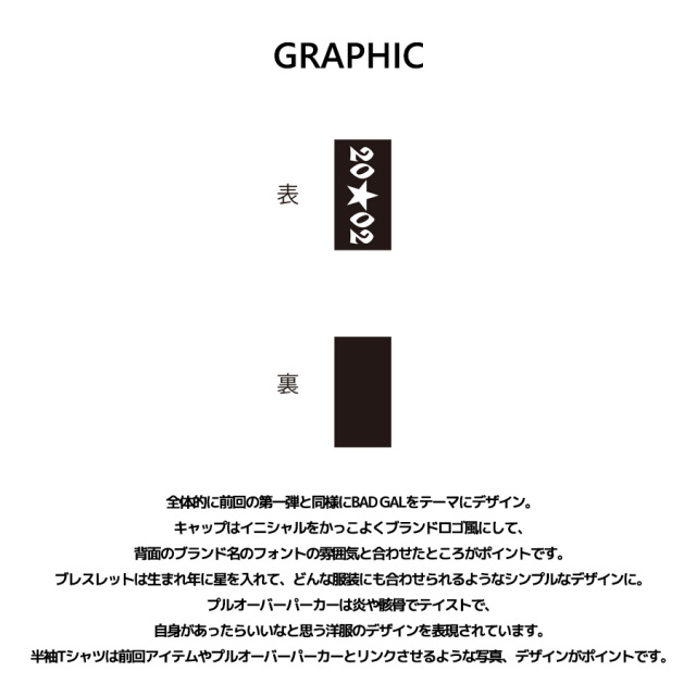 安杜羽加さんを迎えたPIKO KAILA コラボレーション企画第2弾! 今回は半袖Tシャツ、プルオーバーパーカー、キャップ、ブレスレットをリリース! 【デザイン】 全体的に前回の第一弾と同様にBAD GALをテーマにデザイン。 キャップはイニシャルをかっこよくブランドロゴ風にして、 背面のブランド名のフォントの雰囲気と合わせたところがポイントです。 ブレスレットは生まれ年に星を入れて、どんな服装にも合わせられるようなシンプルなデザインに。 プルオーバーパーカーは炎や骸骨でテイストで、 自身があったらいいなと思う洋服のデザインを表現されています。 半袖Tシャツは前回アイテムやプルオーバーパーカーとリンクさせるような写真、 デザインがポイントです。 メッキ加工:国内加工 原型作成:国内 ※アレルギーの反応等がその時の体調や個人差により出る場合がございますので、 金属製アクセサリーを初めてご使用の場合は必ず「パッチテスト」をしてご使用ください。 【パッチテストとは】 金属アレルギーの場合、特殊なテープに24種類の金属試薬をつけてアレルギーの有無を調べる検査です。 皮膚科などで相談をすれば身近にできる検査です。 いくつか検査中に注意する点がありますのでテストを受ける病院で検査について相談してください。 ※現時点での商品の発送予定時期は【5月中旬頃~5月下旬頃順次発送予定】を予定しております。 ※受注生産の為、発送予定時期が前後する場合がございます。 尚、工場の生産の都合上、お客様のご入金・決済のタイミングにより前後する場合がございます。 予めご了承ください。 ※商品代金が10万円以上にて代引き決済を利用してのご注文につきましては、 トラブル防止のため、決済方法をクレジットカード決済もしくはコンビニ決済に変更 させていただく場合がございます。変更前にお電話、メールにてご連絡をさせていただきます。 ※商品によっては撮影時にサンプルを使用しているため若干仕様が異なる場合がございます。 ※また、受注生産とさせていただいておりますが、 各色・サイズ毎に生産数に限りがございます為、 生産数の上限に達しました場合在庫切れとなる場合がございます。 |
