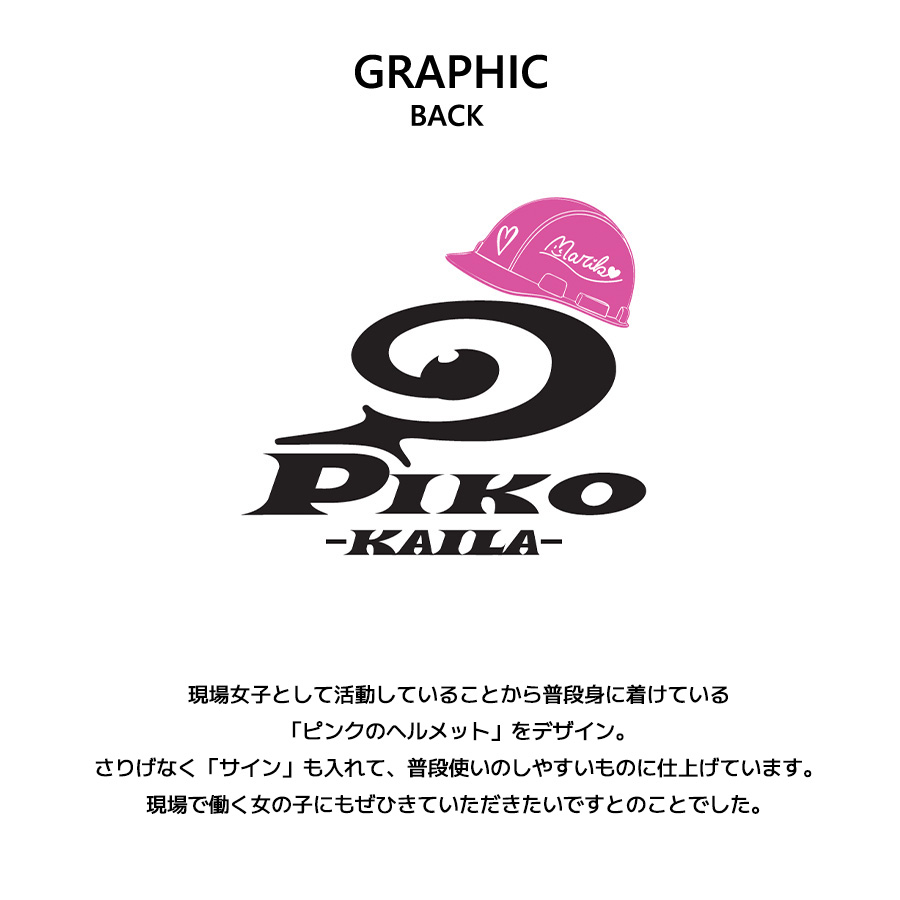 | 商品Data | まりぼーさんとのコラボ企画! 今回のコラボは半袖Tシャツ、ZIPパーカー、トートバッグをリリース。 【デザイン】 現場女子として活動していることから普段身に着けている「ピンクのヘルメット」をデザイン。 さりげなく「サイン」も入れて、普段使いのしやすいものに仕上げています。 現場で働く女の子にもぜひきていただきたいですとのことでした。 ※商品の発送予定時期は【7月上旬頃~7月中旬頃順次発送予定】となります。 尚、工場の生産の都合上、お客様のご入金・決済のタイミングにより前後する場合がございます。 予めご了承ください。 ※商品によっては撮影時にサンプルを使用しているため若干仕様が異なる場合がございます。 また、サイズ・カラーによっては仕様が異なる場合もございます。 ※手作業で縫製をしているため縫製の仕様により、 個体差が生じてしまいますので、1~2cm程度の誤差は予めご了承くださいませ。 ※洗濯機を使用した場合、お届け時のサイズより多少縮む場合がございます。 洗濯機を使用する場合は裏返してネットに入れることを推奨しております。 また、タンブラー乾燥機を使用しますとプリントが剥がれる恐れがありますので 避けていただきますようお願いいたします。 また、洗濯時の液温は40度以下とし、 塩素系および酸素系漂白剤の使用は避けていただきますようお願いいたします。 アイロンにつきましてもプリント及び刺繍部分は避け、 生地部分にアイロンをかける場合にはあて布をして110度(低温)にてお願いいたします。 ※また、受注生産とさせていただいておりますが、 各色・サイズ毎に生産数に限りがございます為、 生産数の上限に達しました場合在庫切れとなる場合がございます。 予めご了承頂けますようお願い致します。 |